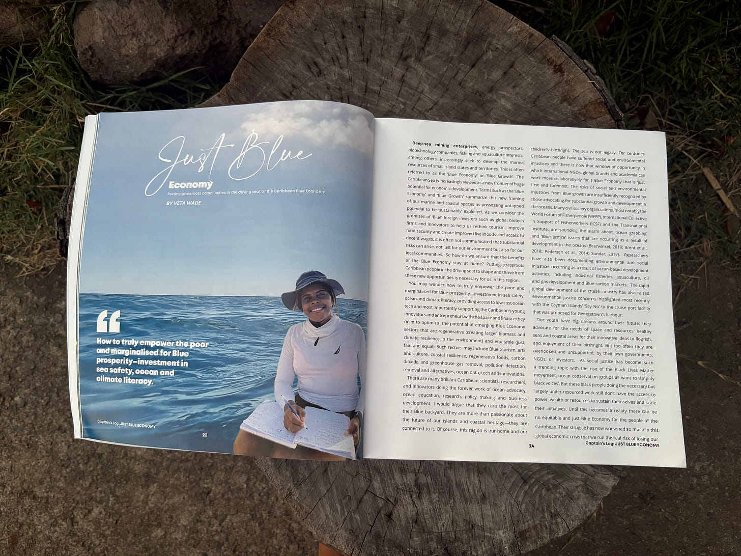 This week, I was finally able to pick up my copy that Chrystal sent via the post office. I was moved to go LIVE on Substack and read a few paragraphs of my essay, “Just Blue Economy,” to my subscribers. I really enjoy nerding out doing this, it somehow feels restorative. I suppose it hits me every time that I’m living my dream; and I’ve remained deeply committed to my mission. My passion for sharing knowledge in creative ways is infectious, if I say so myself :)