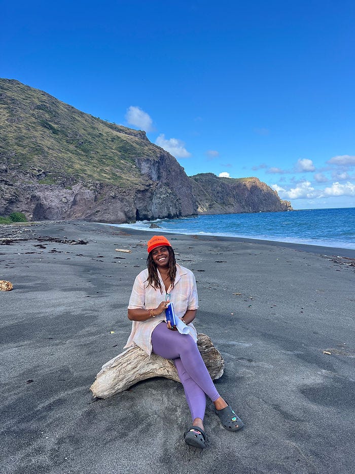 Here's a photo of me during a CESI site visit at Marguerita Bay, Montserrat —being in the field is both healing and fulfilling for me. 📸