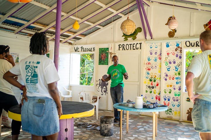 Since returning to Montserrat in 2011, I've tried to create sustainably. I want my methods to always reflect my values. At our Clubhouse at Little Bay, we've used discarded or used materials and reinvented or repurposed them with my own hands or those closest to me in our community. This is quite an enjoyable and ideal way for visitors to support alternative economies.